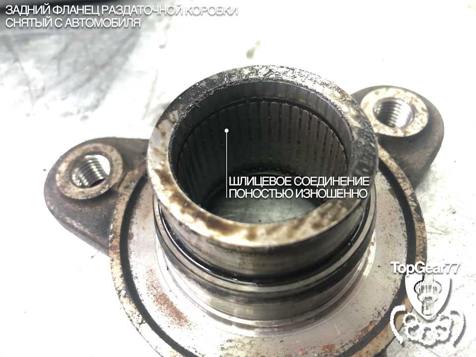 Когда шлицы на валу полностью износятся, придется снова обращаться в сервисный центр за ремонтом. В случае замены вала раздаточной коробки на новый, опять же нужно будет установить новый фланец. Чтобы после ремонта предотвратить ускоренный износ шлицевого соединения.