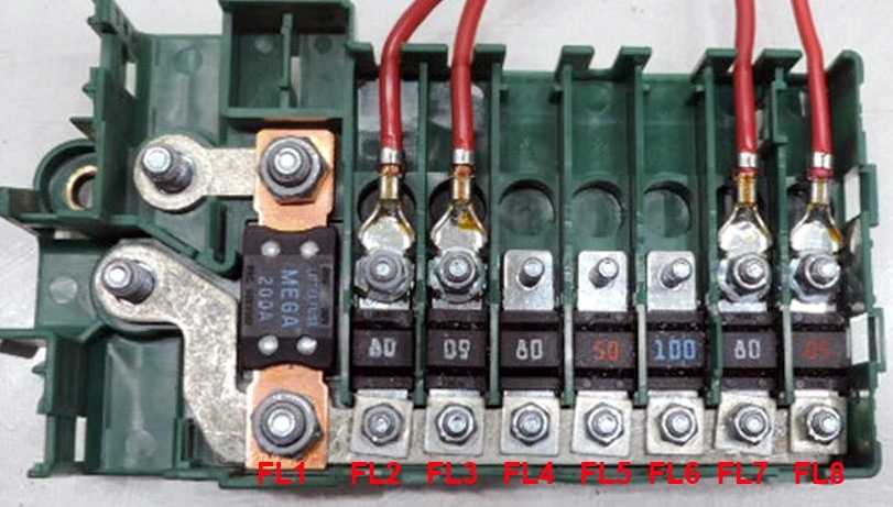| FL2 | 80А Блок предохранителей №1 в багажном отделении, предохранители 72 — 75 |