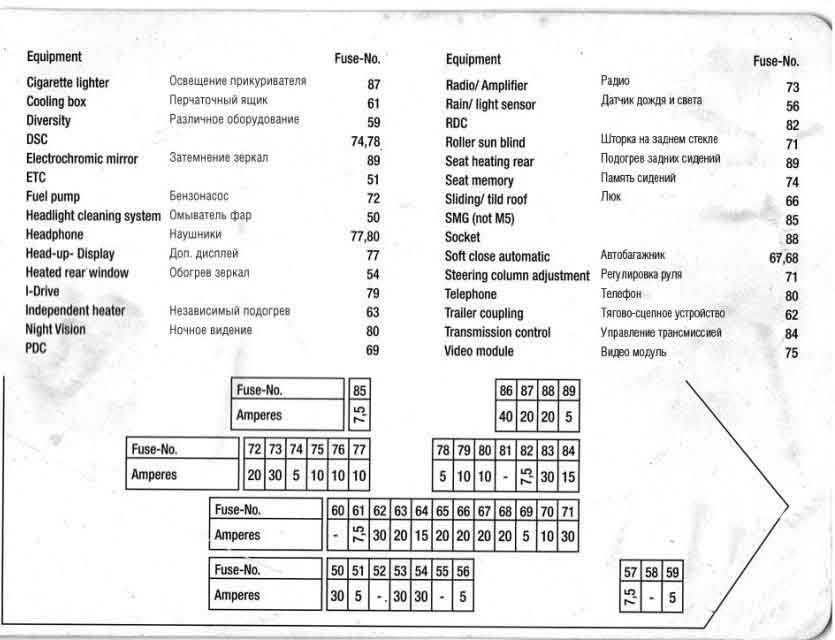 Предохранители и блоки реле бмв е60 со схемами и расшифровками на русском языке
