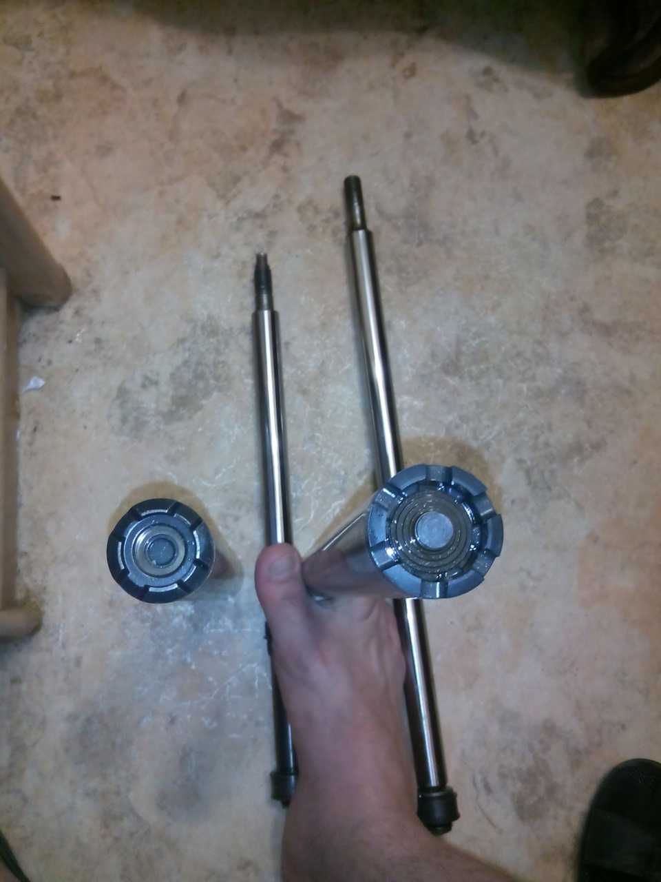 — разобрать стойку при помощи стяжек не сложно, одна верхняя гайка открутилась при зажиме штока газовым ключом, на второй стойке гайку срезали всё тем же универсальным инструментом, не захотела она откручиваться;