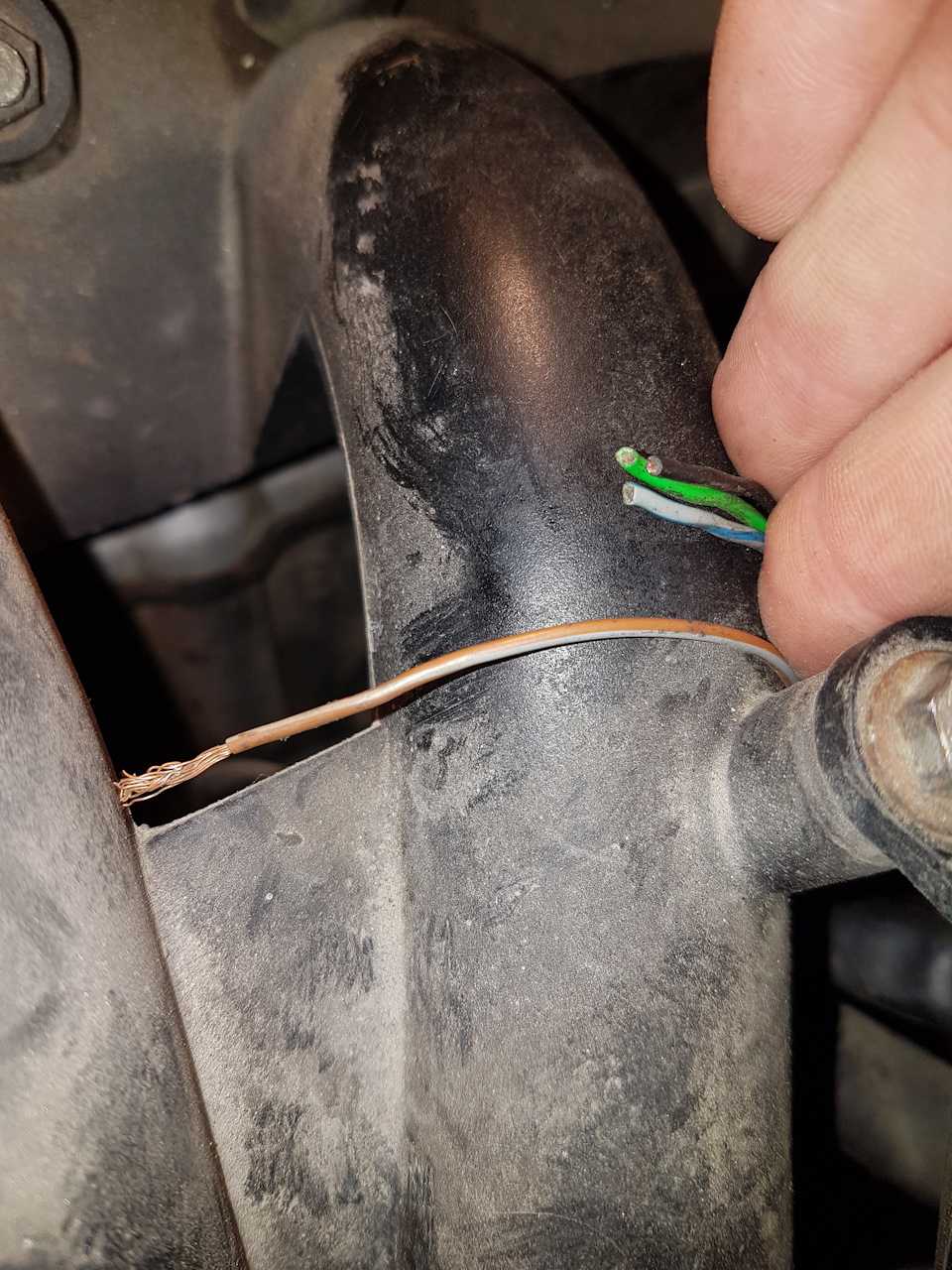 А реальный провод датчика давления был просто обрезан и валялся в общем пучке косы. Вот он — КОРИЧНЕВЫЙ/СЕРЫЙ…