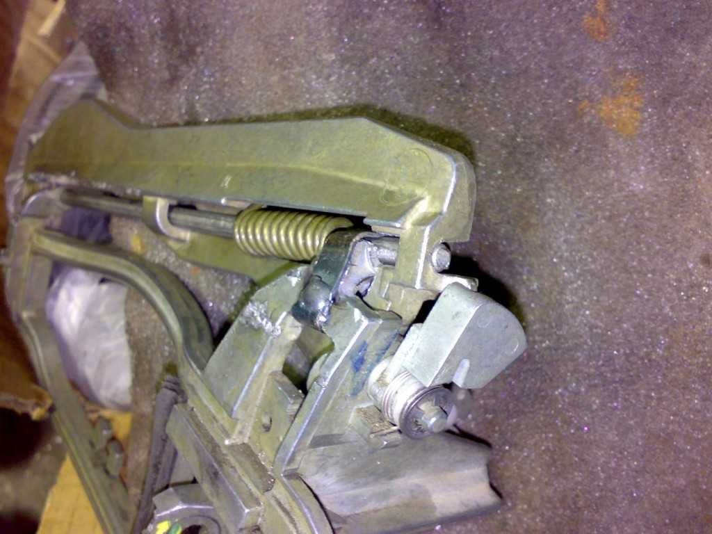 - Откручиваете болт, с внешней стороны двери под резинкой ручки. Потом с внутренней стороны отсоединяете тросик рамки (силуминовой). Еще нужно снять тросик замка, но я не знаю, где его там найти.