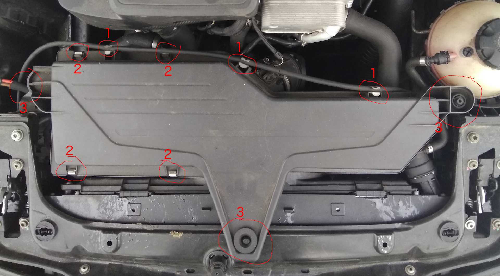 Крышка корпуса крепится при помощи стальных пружинных защелок, три из которых установлены в передней части и еще два — на боковой стороне со стороны водителя. На некоторых моделях BMW вместо металлических зажимов используются винты с цилиндрической головкой T25. Они выкручиваются отверткой со специальной насадкой.