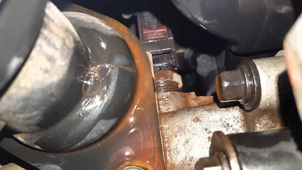 Мы не случайно поставили эту неисправность в конец списка. Случается она действительно нечасто, в основном – на пожилых автомобилях, причём эксплуатировавшихся в тяжёлых условиях. В частности, к таким последствиям приводит перегрев силового агрегата, или неправильная затяжка головки БЦ при проведении ремонтных работ. Пробой прокладки приводит к попаданию антифриза в цилиндры, где он частично смешивается с моторным маслом, ухудшая его смазывающие свойства, а частично выводится через выхлопную систему. Кроме того, в разгерметизированную систему охлаждения будет попадать воздух, ухудшая циркуляцию ОЖ вплоть до образования воздушных пробок. Диагностировать такую проблему несложно – цвет выхлопа изменится с прозрачного на густой белый благодаря водяному пару, попадающему в выхлопные газы через цилиндры. Если открыть капот, то можно заметить бурление ОЖ в расширительном бачке, а в некоторых случаях антифриз даже будет выплёскиваться наружу через дренажное отверстие из-за повышенного давления в системе.