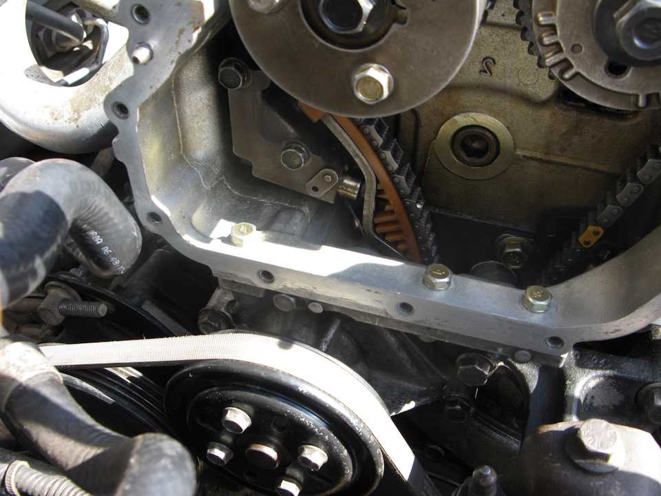 После получения нужных результатов устанавливаем обратно цепь ГРМ и звезды привалов нужно провернуть коленвал два раза и проверить правильность установки меток ГРМ производим обратную сборку ,так как передняя панель не имеет прокладки, то наносится герметик Виктор Рейнз.