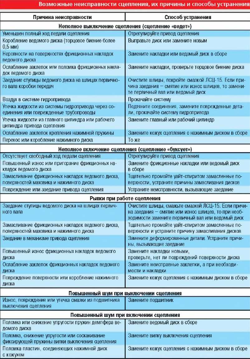 А если при плавном нажатии/отпускании педали сцепление не включается (такой симптом характерен для гидравлического привода), то можно говорить о следующих причинах: