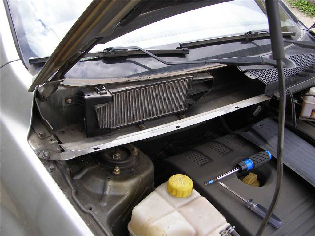 - Сам расходник скрывается под жабо внизу лобового стекла. Для получения доступа к нему сначала снимается пластиковая накладка.