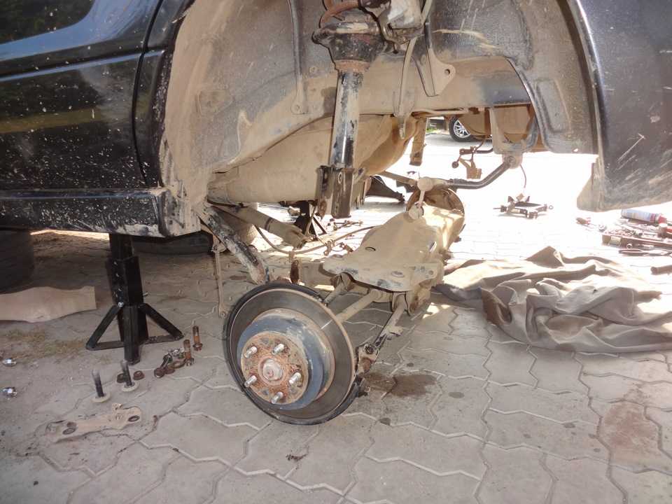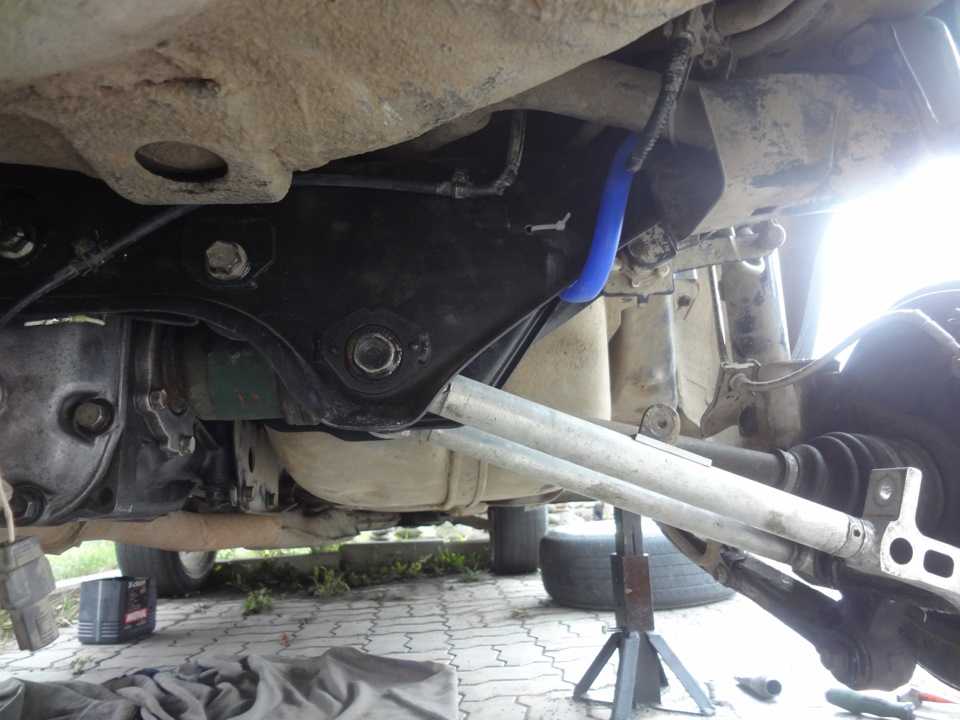 Снял выхлоп от дайнпайпа и кардан, целиком скинул балку, со всем прикрученным, так как никакие болты рычагов не поддавались «мирному» разбору.
