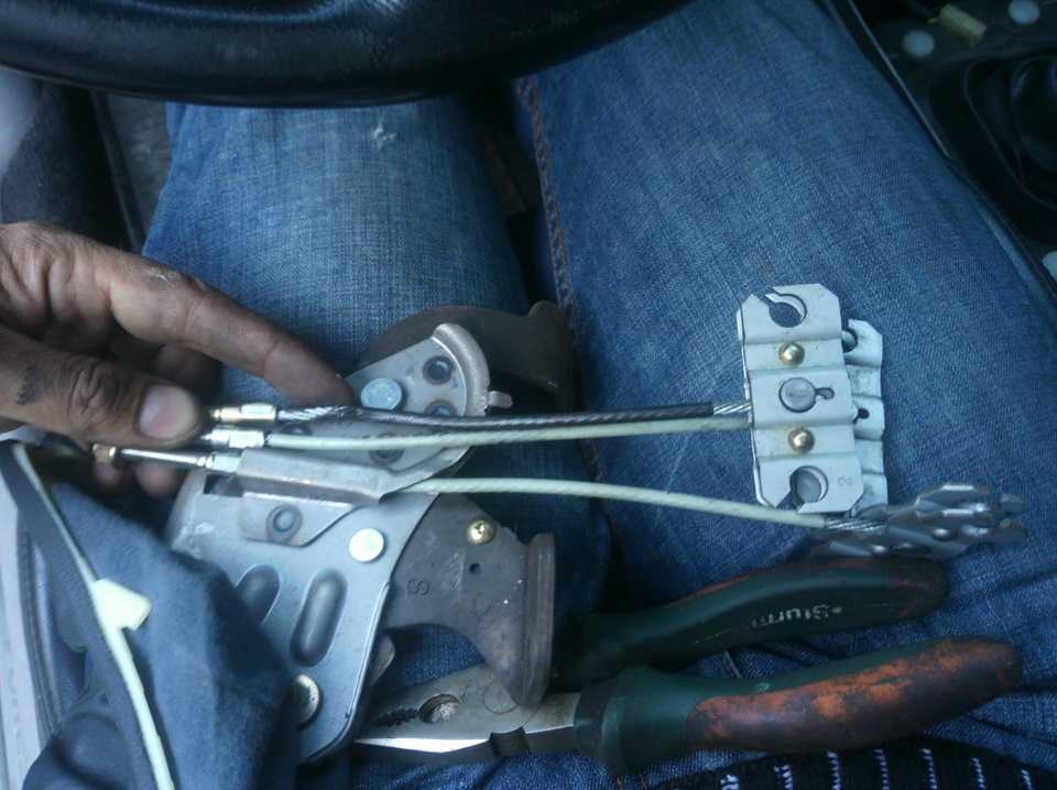 Занялся ручником, развел колодки. Снял водительское кресло, и установил тросики ручника, родные от ступиц, снятых с GDB.