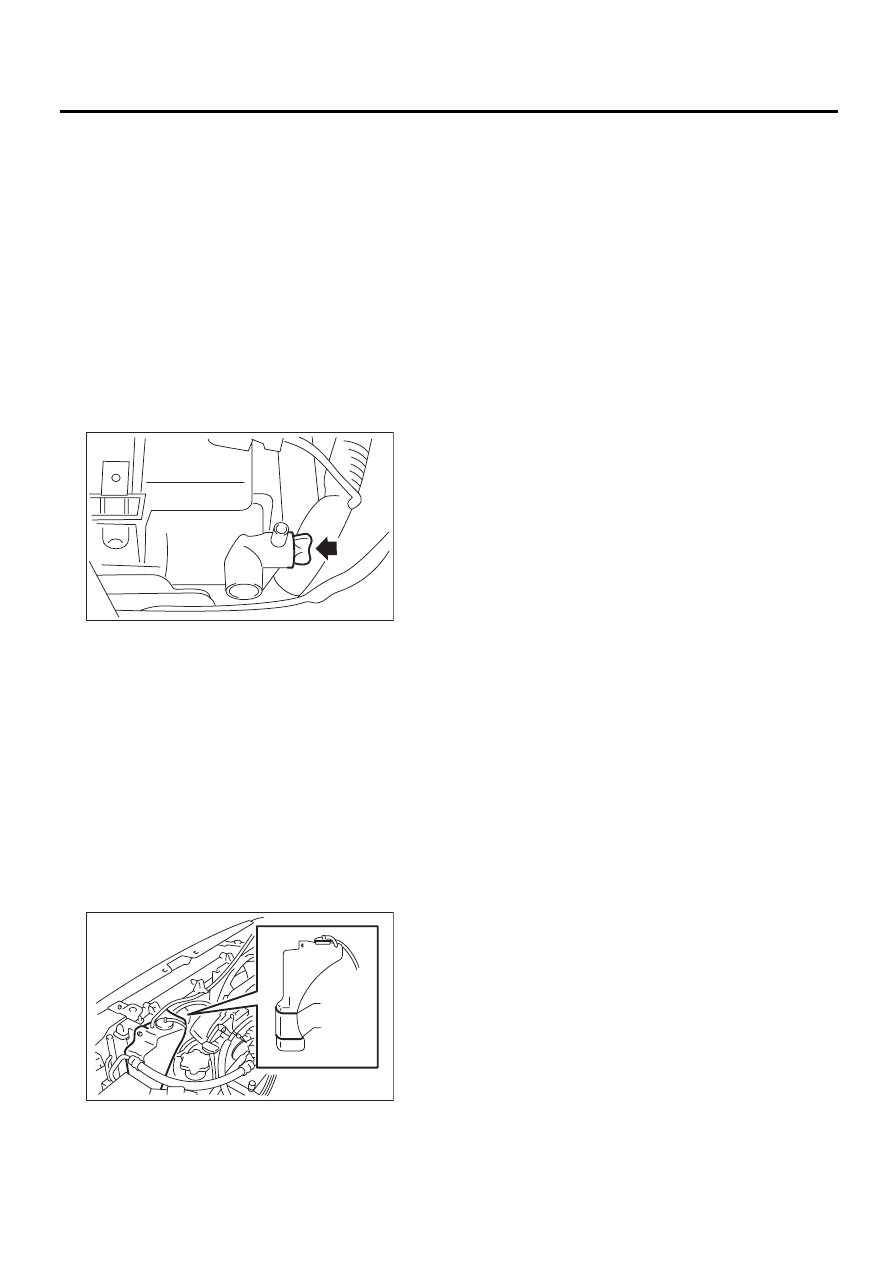 (Выполните этуоперацию за 40 секунд.)11) Подождите одну минуту после остановкидвигателя, после чего снимите крышку радиа-тора (или крышку заправочного бачка охлаж-дающей жидкости у моделей с турбонадду-вом). Если уровень охлаждающей жидкостиупал, добавьте охлаждающую жидкость в ра-диатор до уровня заливной горловины (моделибез турбонаддува) или в заправочный бачок(модели с турбонаддувом) до уровня заливнойгорловины.